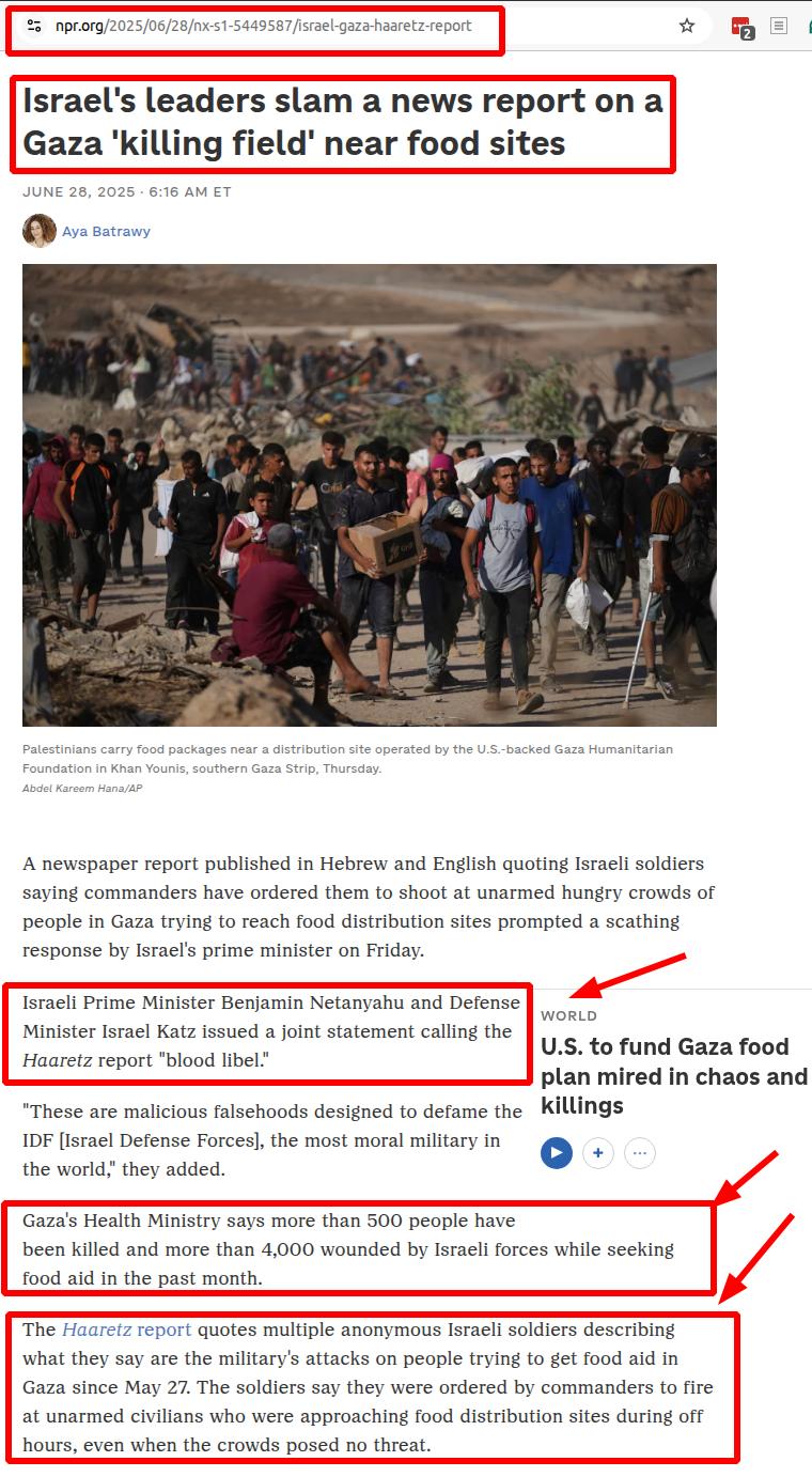 This pattern was further illustrated in a recent Ha'aretz report, where several Israeli officers described receiving orders to fire on Palestinian civilians at aid centers. The office of the Israeli Prime Minister officially responded to this journalistic exposé by dismissing it as a "blood libel:"