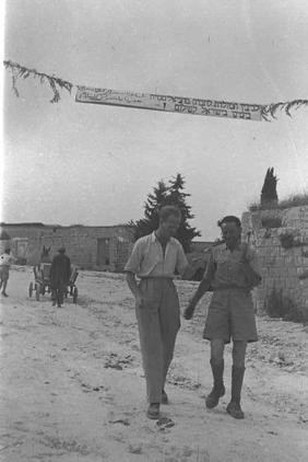 Zionist Jews enjoy the looted Palestinan homes in Dayr al-Qasi; soon after the indigenous Palestinian population was driven out,Oct. of 1948!