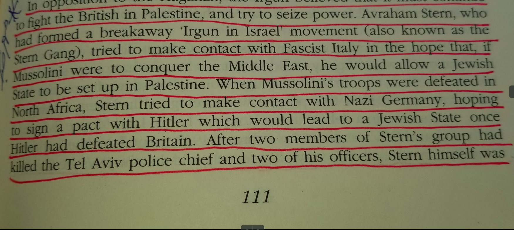 Chief among these propaganda (or demonizing) tactics is to cite al-Hajj Amin al-Husseini's collaboration with the Nazis during WW II, while obscuring the fact that the Stern Terror Gang (lead by Yitzhak Shamir) approched Nazis for collaboration against the British Mandate during the same exact period (Israel: A History, p. 111-112). It is worth pointing out, also, that the Irgun (once led by Menachem Begin) attacked the British war machine and terrorized Palestinians while the Holocaust was in progress in Europe's concentration camps. Such facts are often hidden and purposely suppressed in most Jewish communities around the world, and for fairness sake, they must be debated.