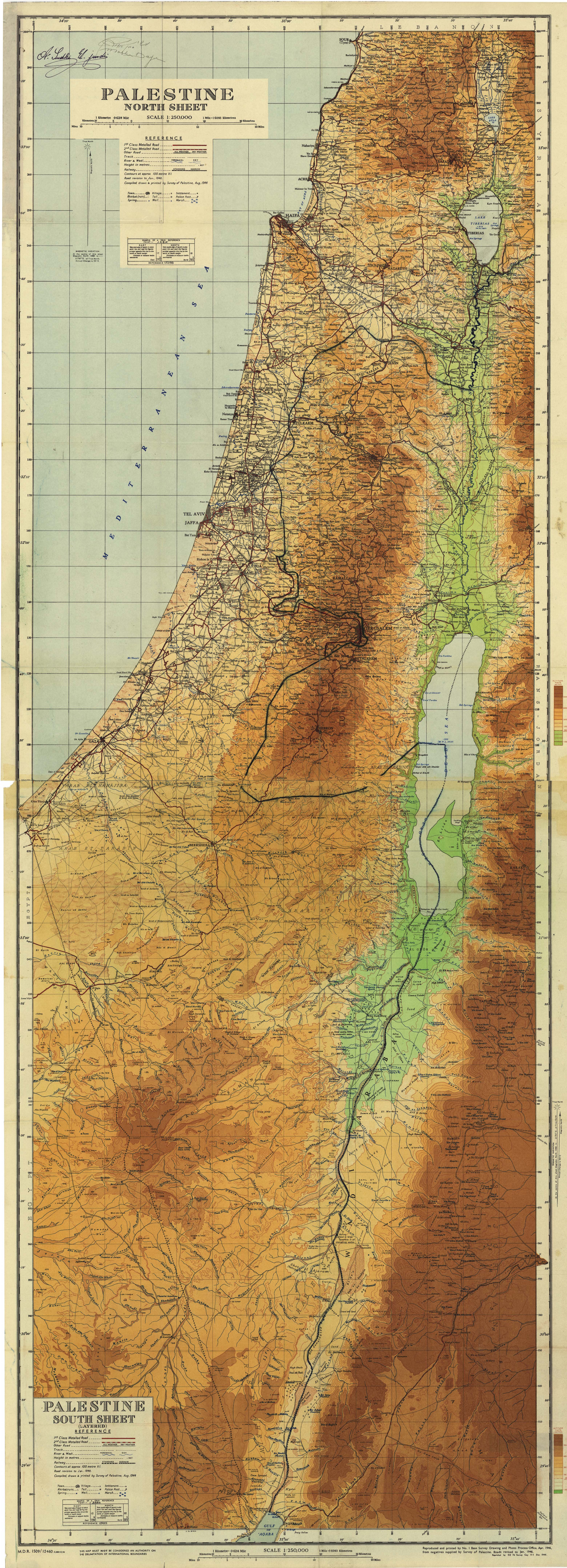 Palestine Maps: Pre-Nakba Detailed Map of Palestine signed by Moshe Dayan & Shukri al-Jundi (of Jordan) during armistice negotiations, 1949 |
