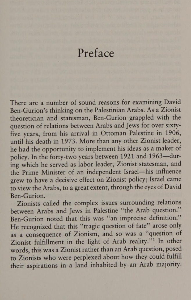 "tragic question of fate" that arose only as a consequence of Zionism, and so was a "question of Zionist fulfillment in the light of Arab reality." In other words, this was a Zionist rather than an Arab question, posed to Zionists who were perplexed about how they could fulfill their aspirations in a land already inhabited by a Palestinian Arab majority. (Shabtai Teveth, p. xii, Preface)