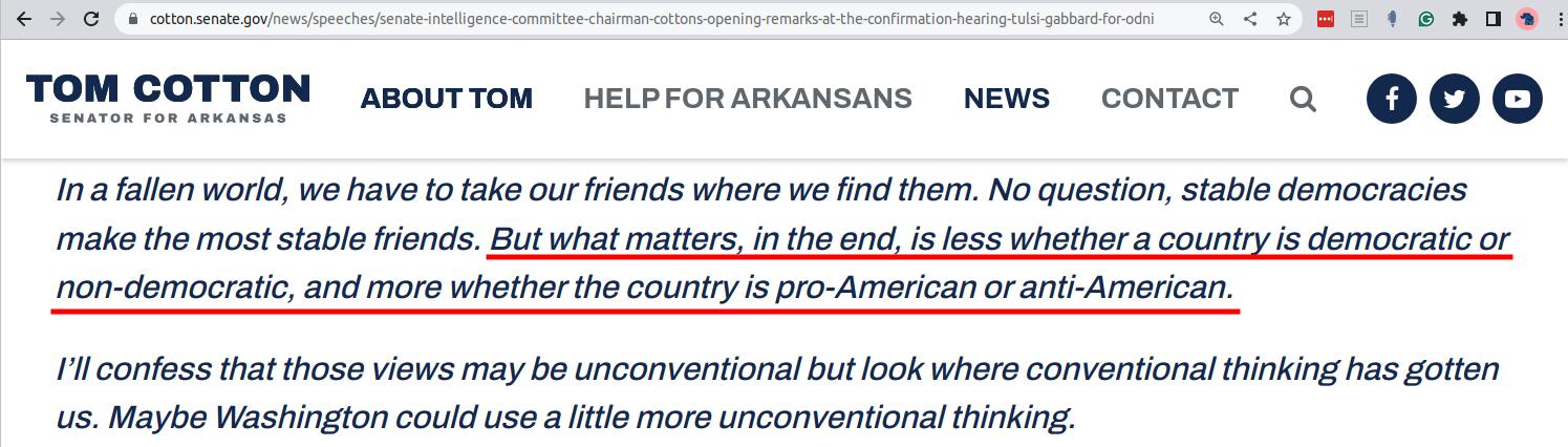 There is no denying the fact that autocratic, oppressive, and undemocratic regimes mainly rule the Middle East. On the other hand, the majority of these repressive regimes were primarily founded and funded based on Israeli and American wishes. It should be noted that the most famous revolts in the Middle East have been ruthlessly crushed by American puppet regimes (whom the West often refers to as "Moderate regimes") in the area. The regimes in Iraq, Egypt, Saudi Arabia, the Hashemite Kingdom, Lebanon (before the civil war), Arab Gulf States, Morocco, Iran (before the Islamic revolution), Turkey, ... etc., were all funded and directed by the United States of America; the land of the free and the home of the brave. Sadly, many of the so-called "moderate regimes" are ten times more accountable to Uncle Sam than to their public (see how Senator Tom Cotton articulated our point). Ironically, if democracy truly serves Israel's national interests in the region, then maybe it should direct its powerful lobby in Washington, AIPAC, to start lobbying on behalf of the oppressed in the Middle East; after all, promoting "democracy is the key" to lasting peace in the Middle East? Again, we rely on Professor John Mearsheimer to make our point in under 60 seconds. Hang on to your seat for a short dose of real politics: