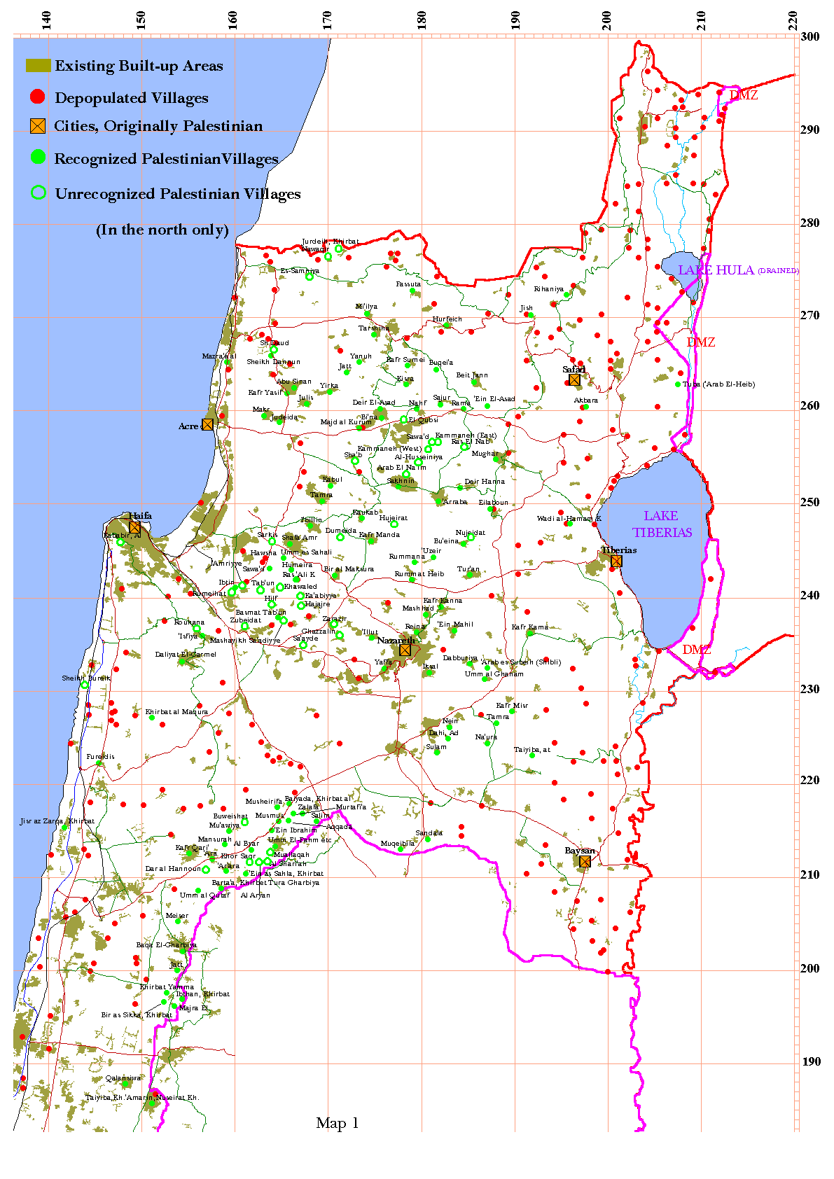With population growth and scarcity of land, Israeli Palestinians had to build new houses on their land, which develop into villages. These villages are not shown on Israeli maps, not provided with utilities, health or education services, not even connected to roads. These are so called