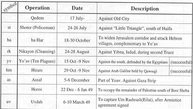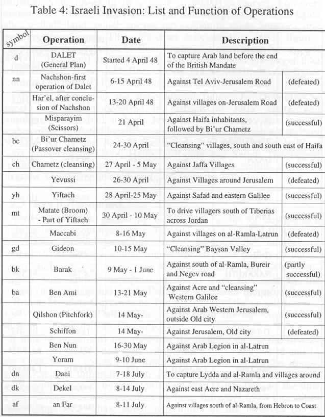 The exodus was always associated with the various Israeli operations, which resulted in outright expulsion or military assault on the villages. Names such as "Cleansing" and "Broom", which occur no less than 4 times, indicate clearly the nature of these operations.
