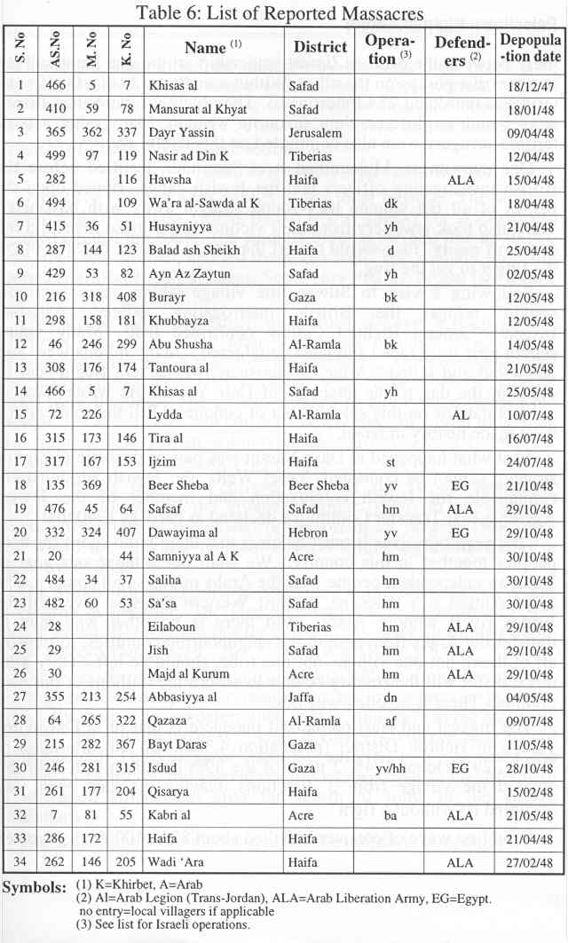 Table 6 lists 34 reported massacres. This list excludes the