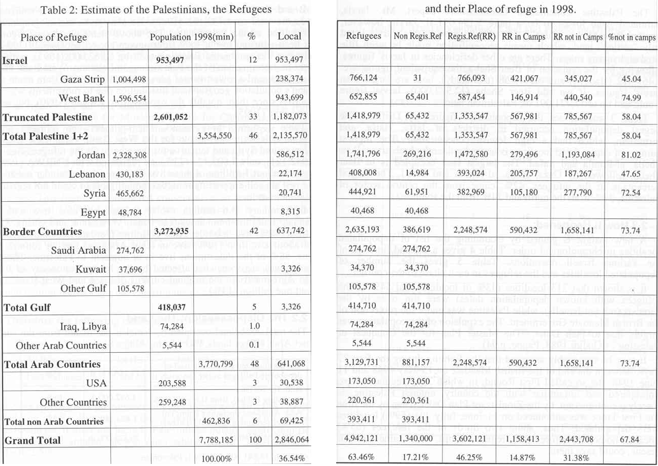 Table 2: Estimate of Palestinians, the Refugees and their Place of refuge in 1998.