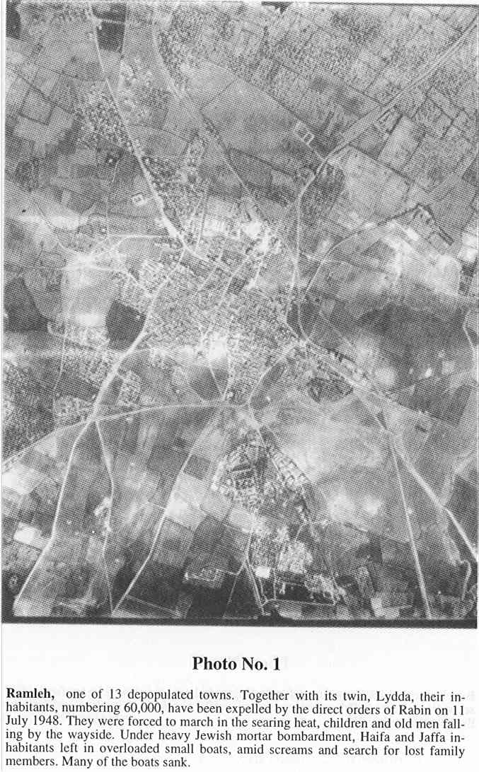 Photo (1) shows one of 13 occupied Palestinian towns. Photo (2)