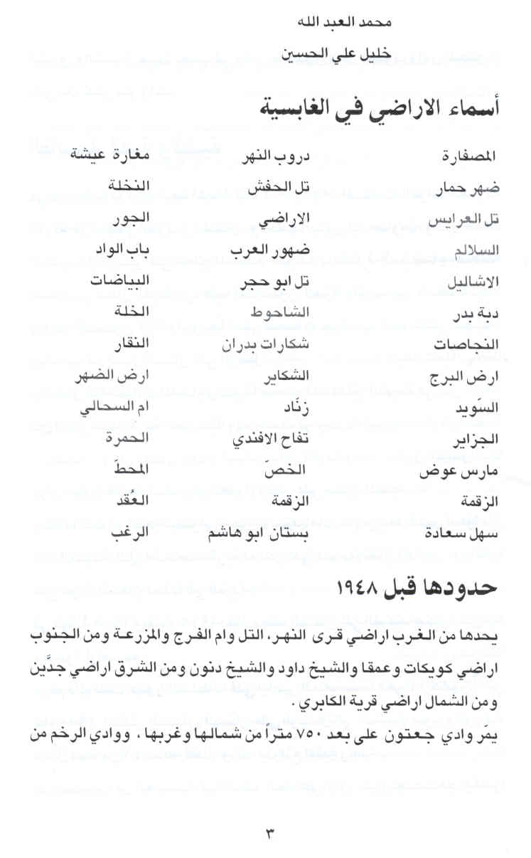 الغابسية: اسماء الاراضي في قرية الغابيسة قبل النكبة |