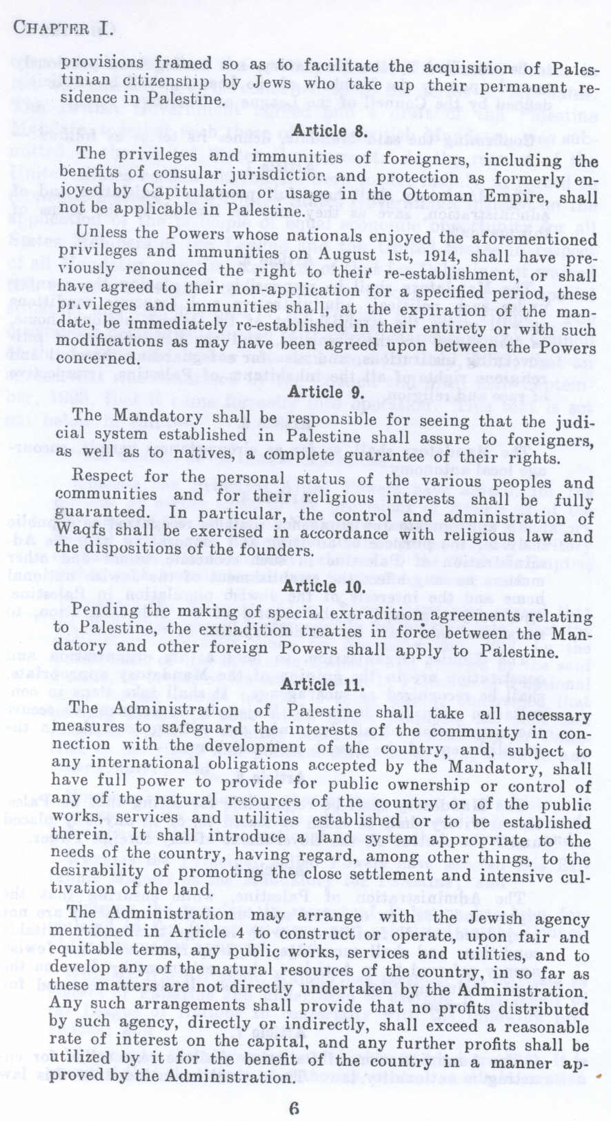 The privileges and immunities of foreigners, including the benefits of consular jurisdiction and protection as formerly enjoyed by Capitulation or usage in the Ottoman Empire, shall not be applicable in Palestine.