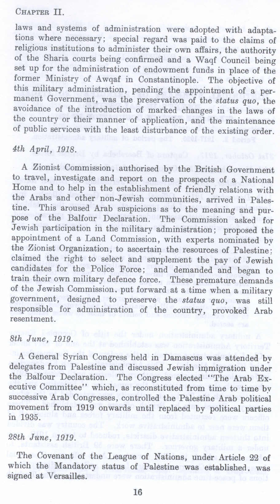 British Mandate: A Survey of Palestine: Historical Summary, 1919. Volume I, Chapter II - Page 16 |