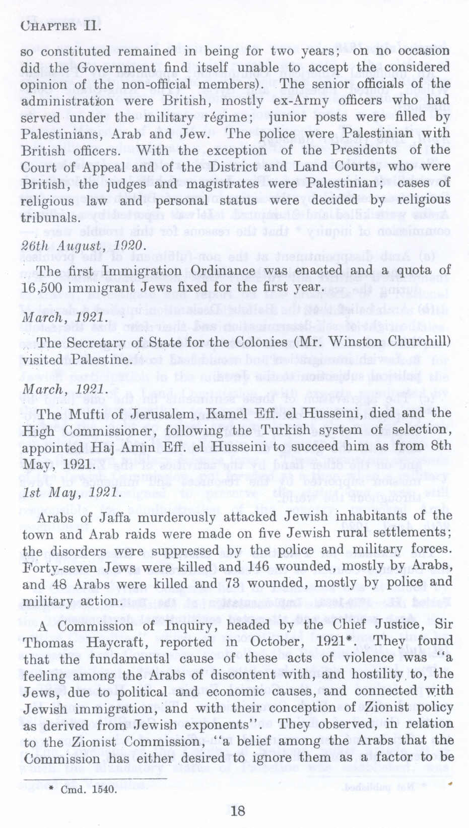 British Mandate: A Survey of Palestine: Chapter II, Historical Summary, 1920-1921. Volume I - Page 18 |