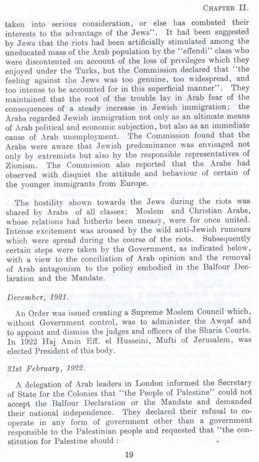 British Mandate: A Survey of Palestine: Historical Summary, 1921-1922. Volume I - Page 19 |