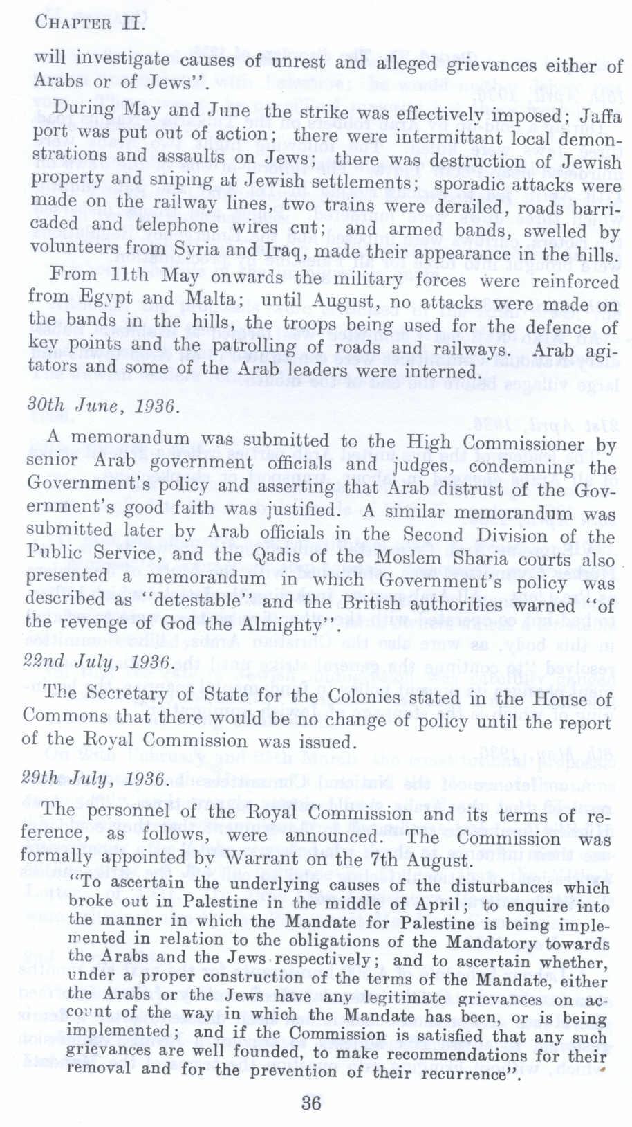 British Mandate: A Survey of Palestine: Historical summary, June-July 1936. Period VI: The disorder of 1936 Volume I - Page 36 |