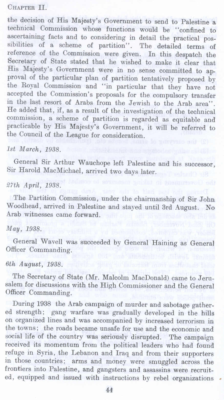 British Mandate: A Survey of Palestine: Volume I - Page 44. January - August, 1938 , The Royal Commission, the Partition Commission, and the White Paper of May, 1939. |
