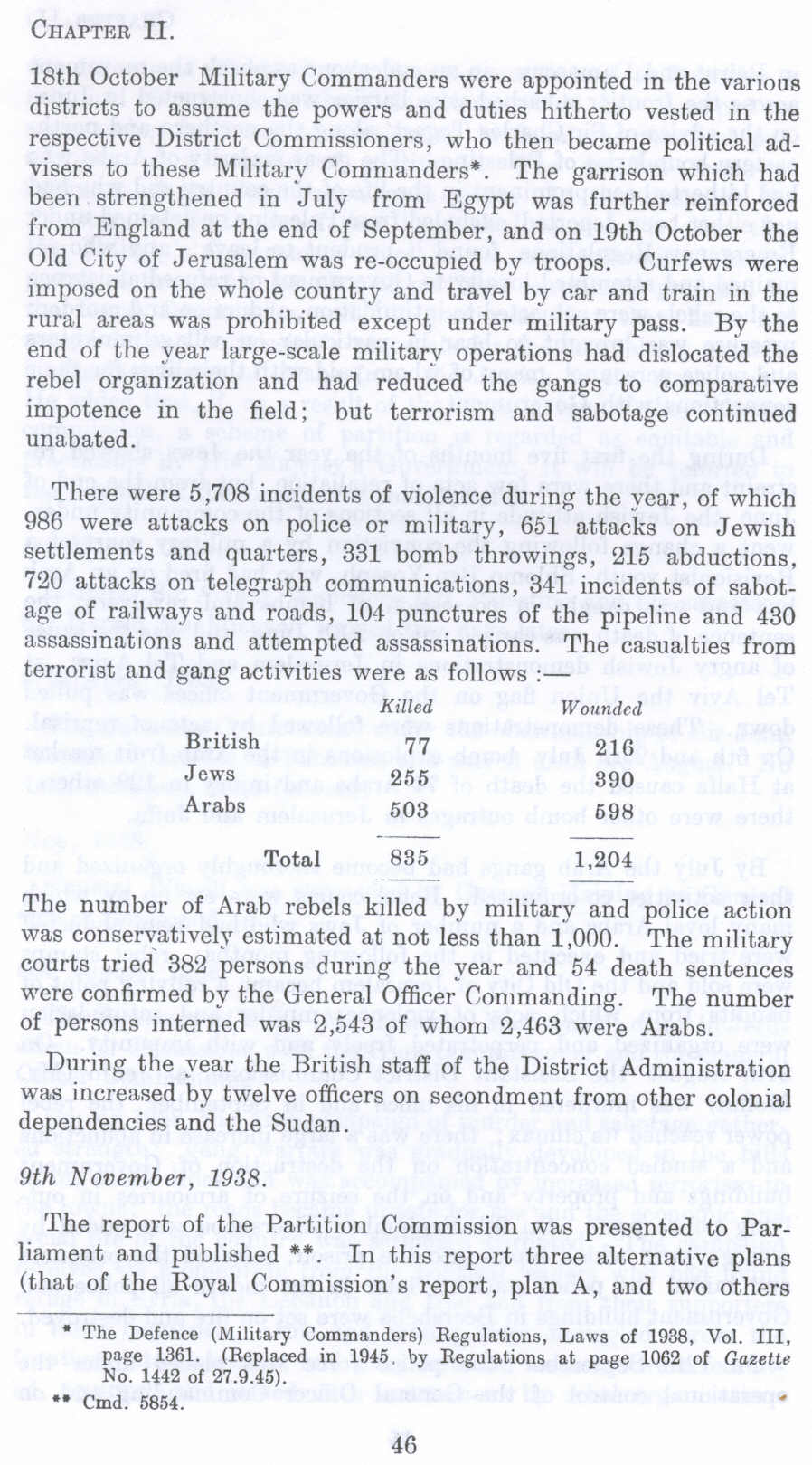 British Mandate: A Survey of Palestine: Volume I - Page 46. November, 1938, The Royal Commission, the Partition Commission, and the White Paper of May, 1939. |