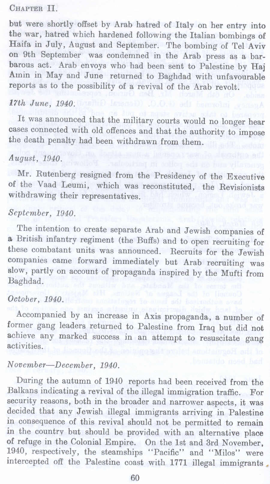 British Mandate: A Survey of Palestine: Volume I - Page 60. Historical Summary: August-December, 1940, The period of political Dormancy during the Early Years of the World War. |