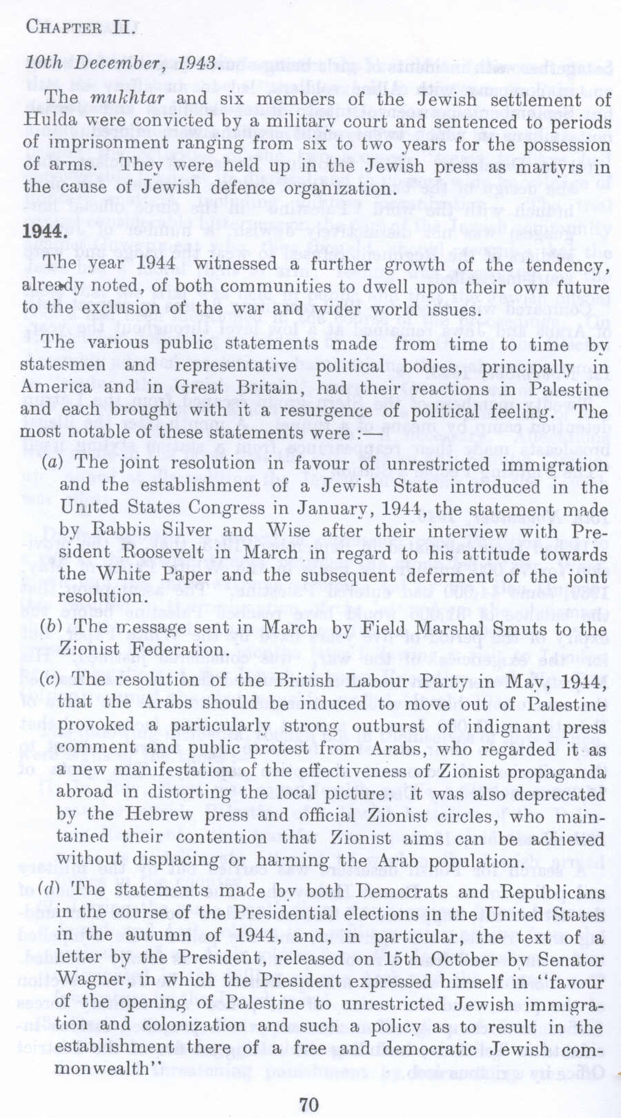 British Mandate: A Survey of Palestine: Volume I - Page 70. Historical Summary: Period IX: December, 1943 to 1944. The agitation for a Jewish State and unrestricted immigration |