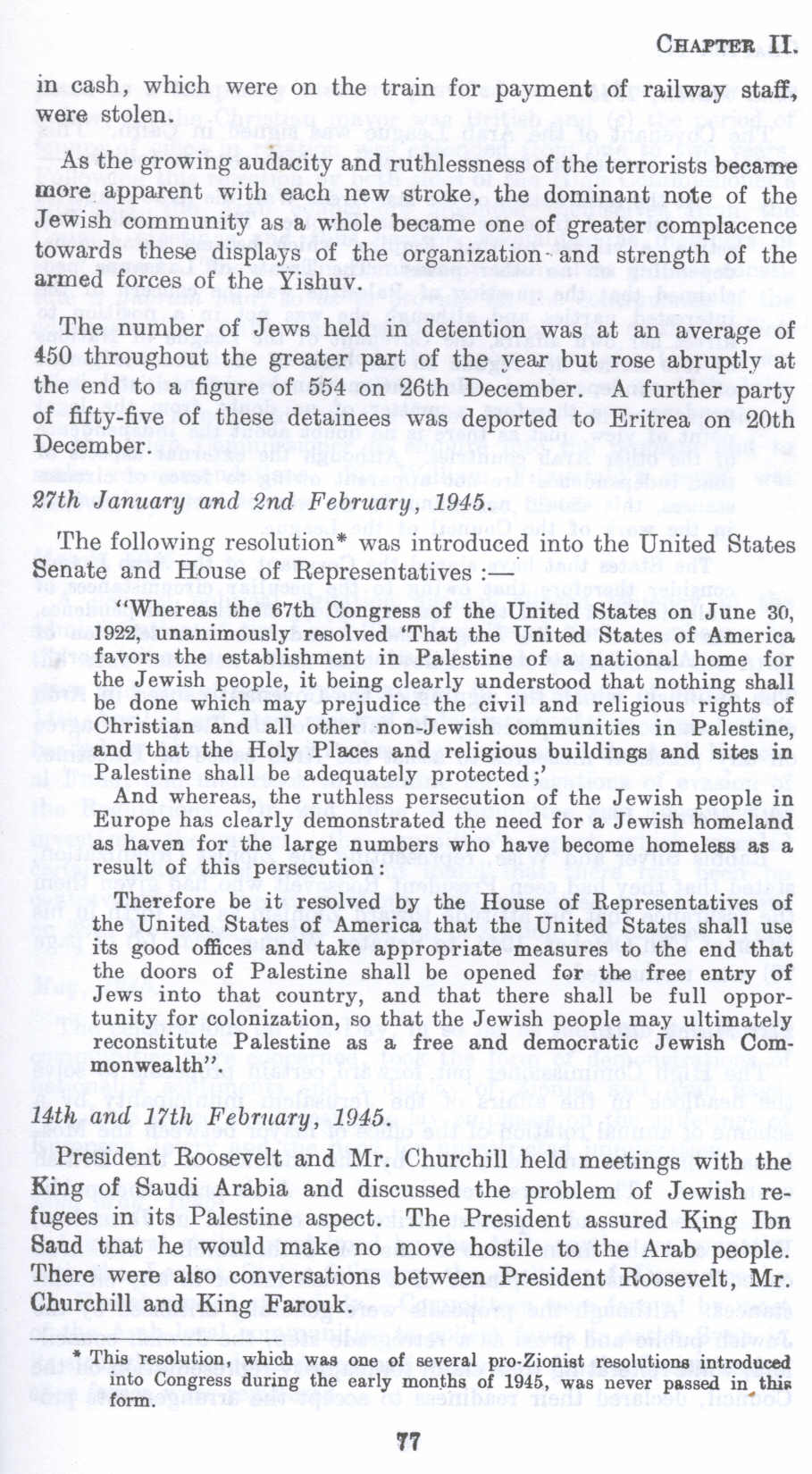 British Mandate: A Survey of Palestine: Volume I - Page 77. Historical Summary: Period IX: January - February, 1945. The agitation for a Jewish State and unrestricted immigration |