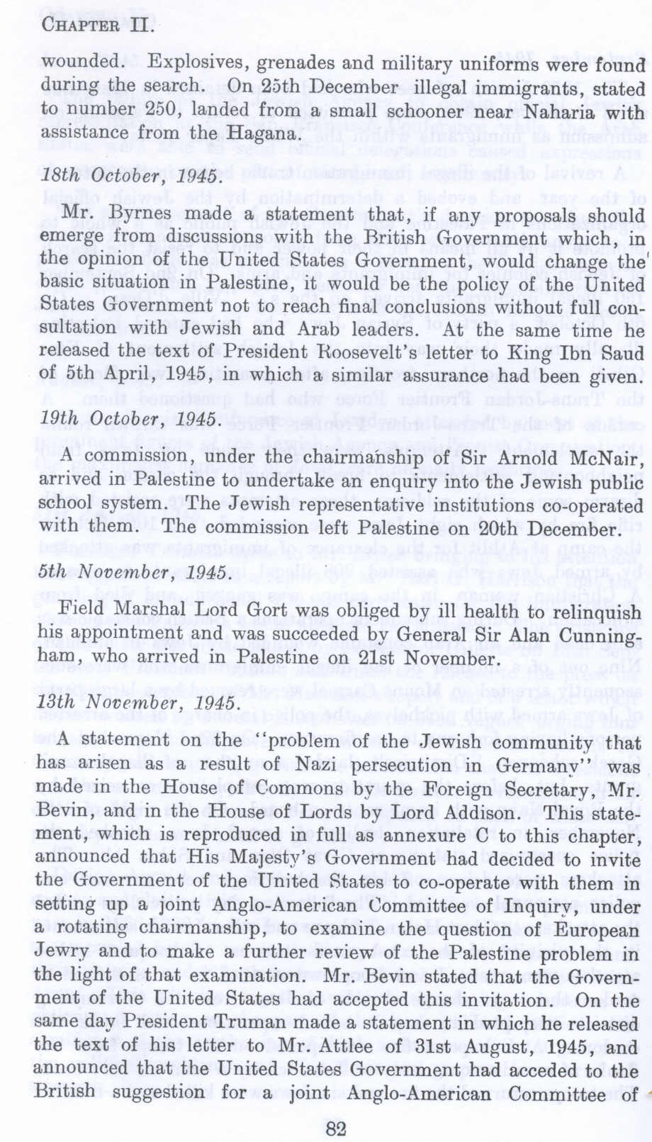 British Mandate: A Survey of Palestine: Volume I - Page 82. Historical Summary: Period IX: October - November, 1945. The agitation for a Jewish State and unrestricted immigration |