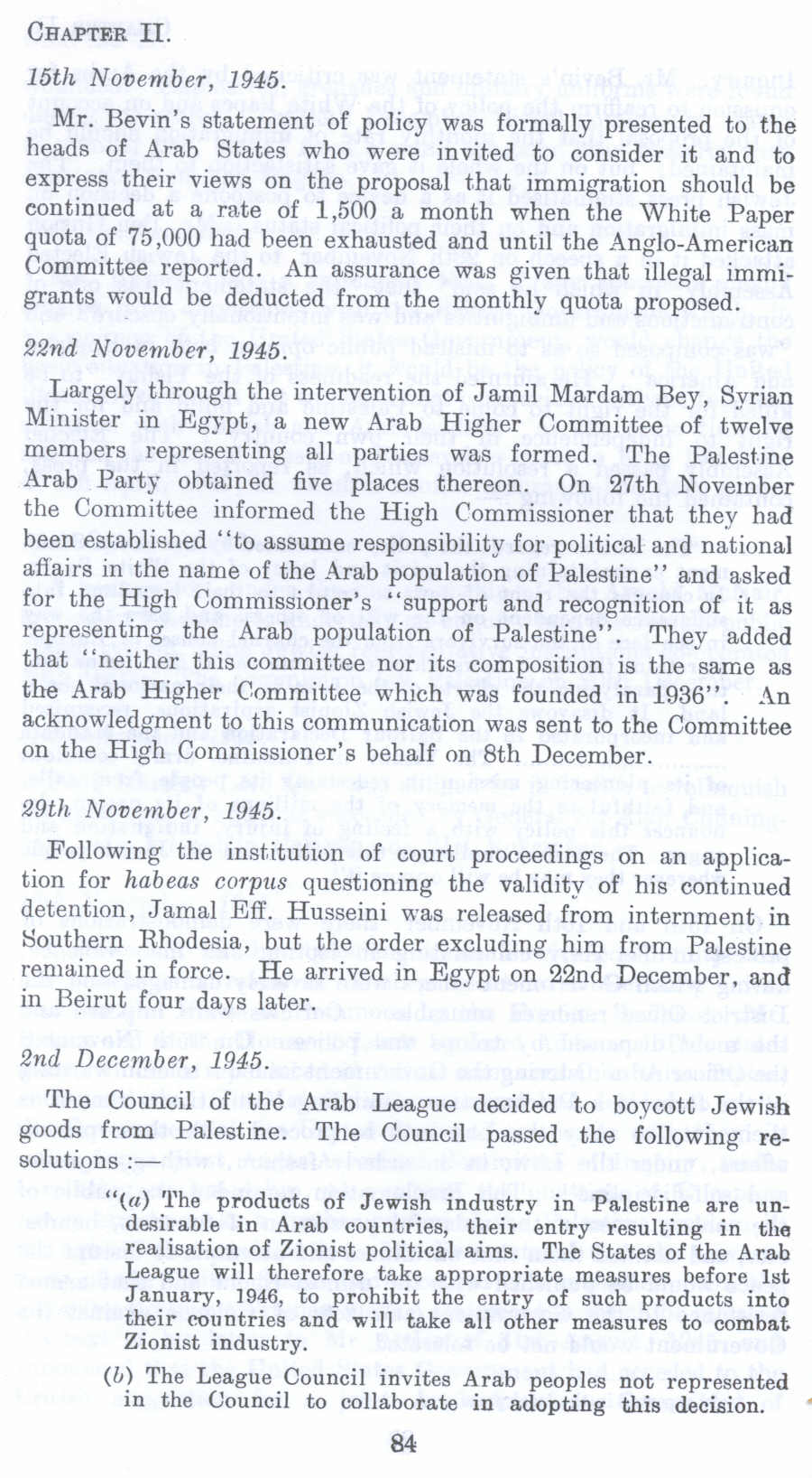 British Mandate: A Survey of Palestine: Volume I - Page 84. Historical Summary: Period IX: December, 1945. The agitation for a Jewish State and unrestricted immigration |