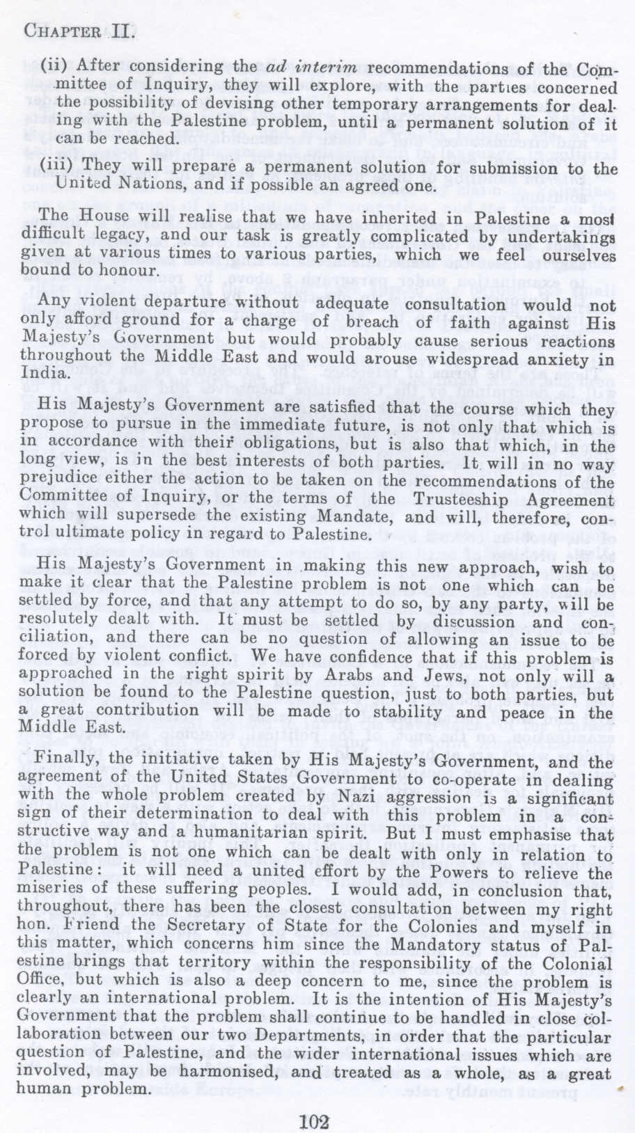 British Mandate: A Survey of Palestine: Volume I - Page 102. Annexure III: Statement made in the House of Commons on 13th November, 1945 By Mr. Ernest Bevin, Secretary of State for Foreign Affairs (Continued) |