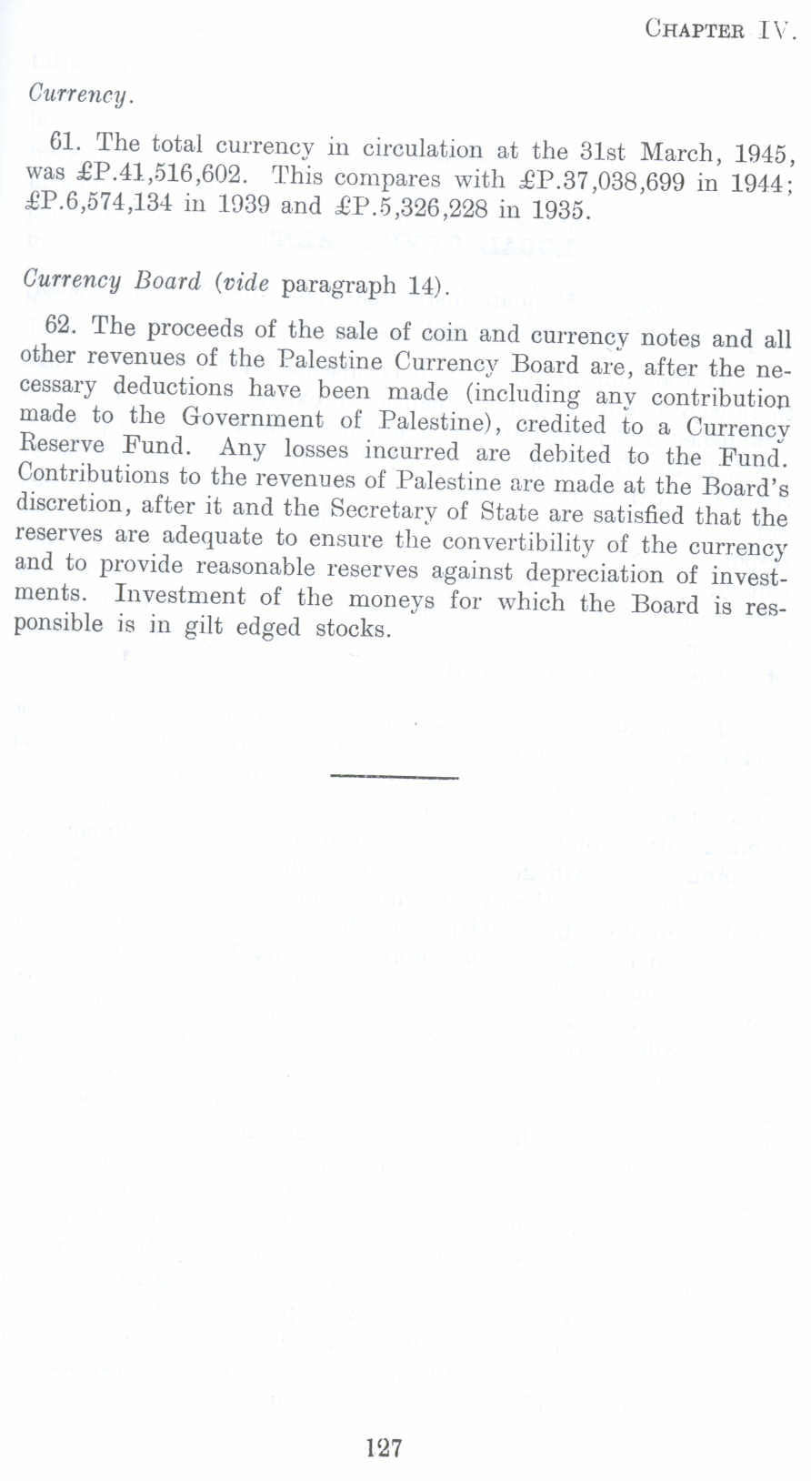 Government Finances: Currency & Currency Board in Palestine. British Mandate: A Survey of Palestine: Volume I - Page 127. Chapter IV: The Central Government and Its Finances |