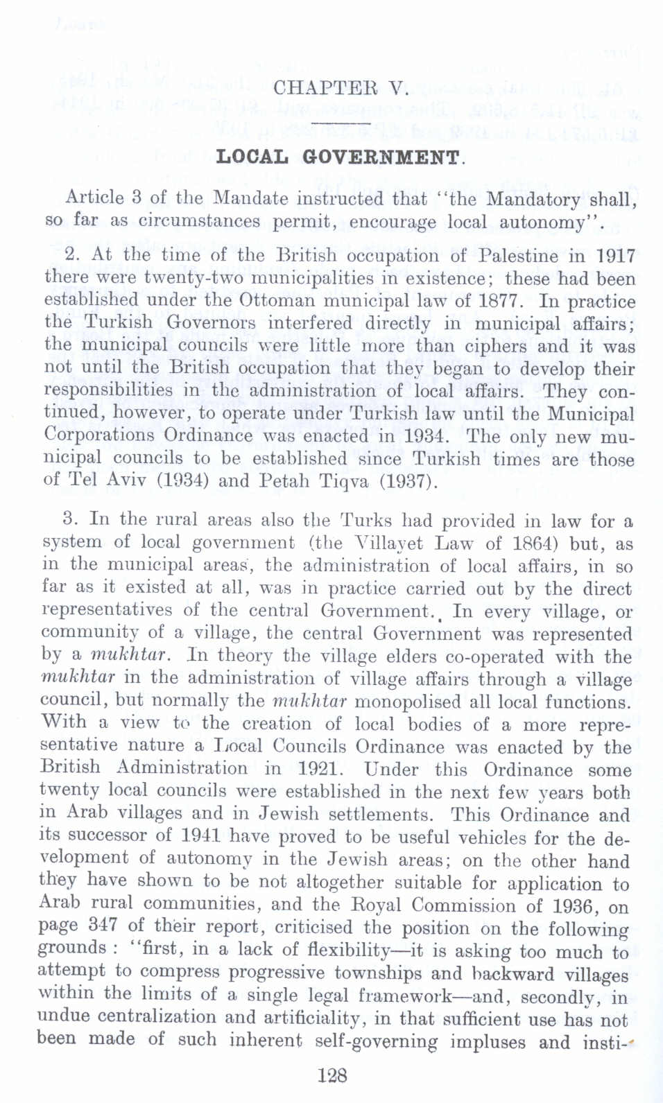 Local Government in Palestine. British Mandate: A Survey of Palestine: Volume I - Page 128. Chapter V |