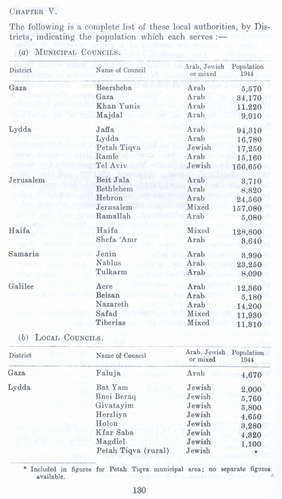Municipal Councils & Local Council in Palestine. British Mandate: A Survey of Palestine: Volume I - Page 130 . Chapter V |