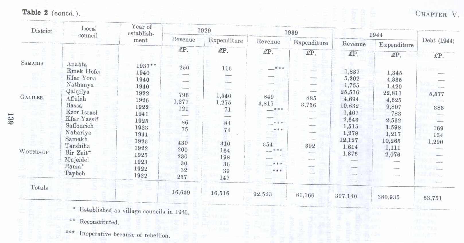 Revenue and Expenditure for Local Councils in Palestine before 1948 (Nakba). British Mandate: A Survey of Palestine: Volume I - Page 139 |