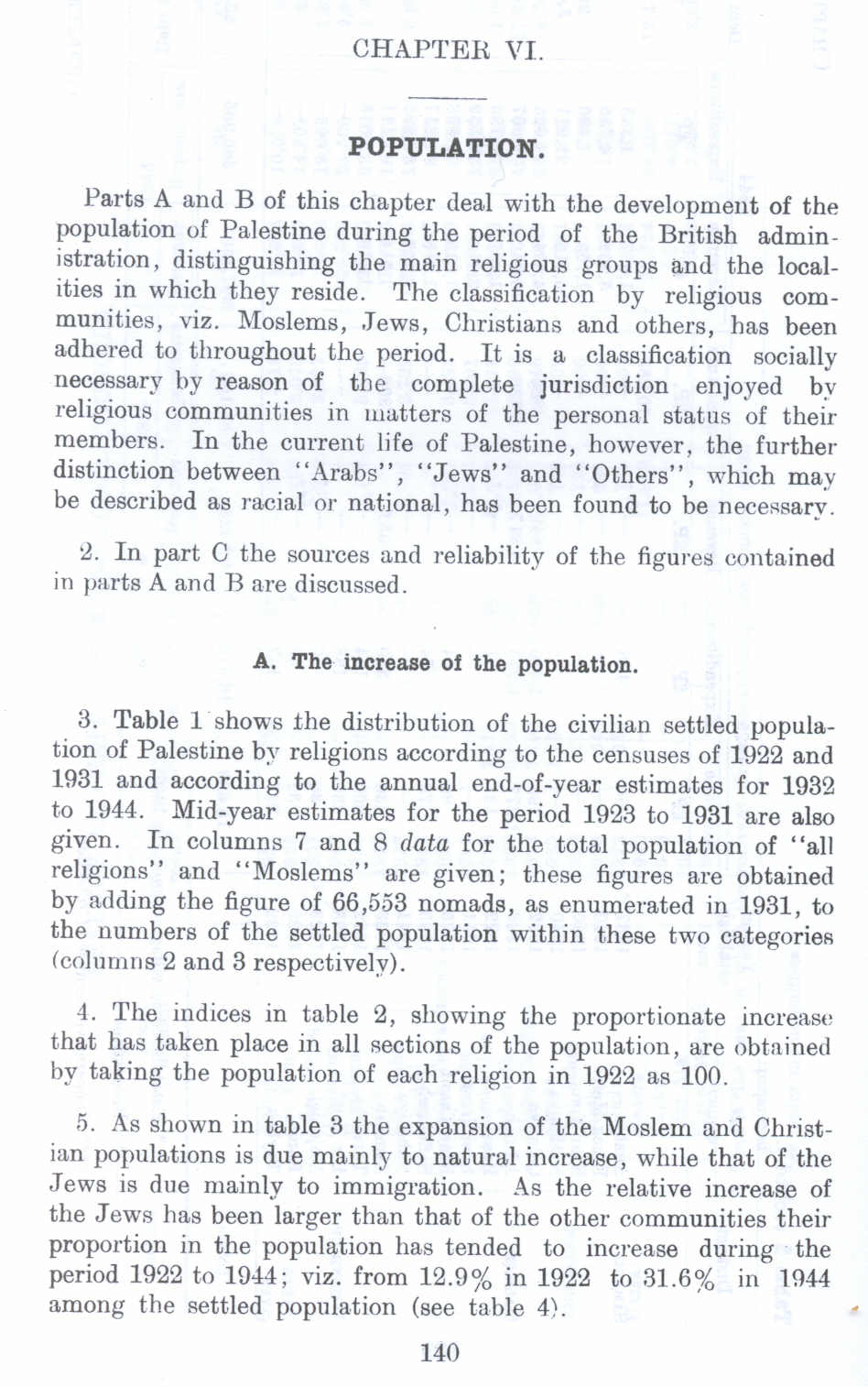 Population in Palestine and the Increase in Population. British Mandate: A Survey of Palestine: Volume I - Page 140. Chapter VI |