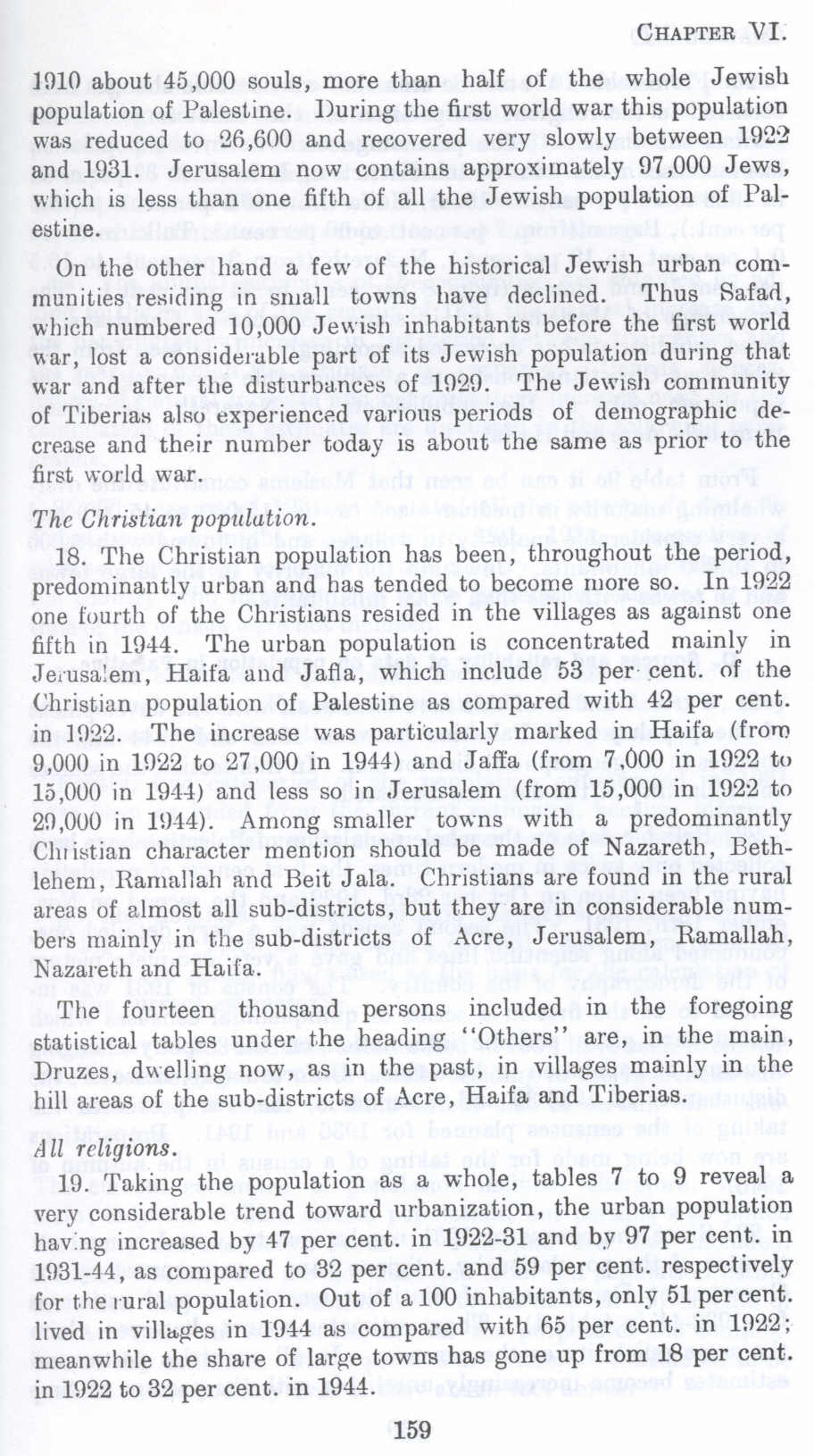The Christian Population of Palestine before 1948 (Nakba), British Mandate: A Survey of Palestine: Volume I - Page 159. Chapter VI: Population: |