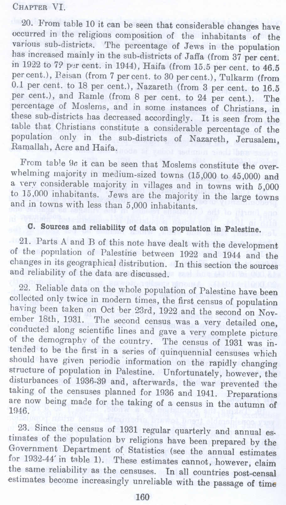 Sources and Reliability of data on population in Palestine, British Mandate: A Survey of Palestine: Volume I - Page 160. Chapter VI: Population: C. |