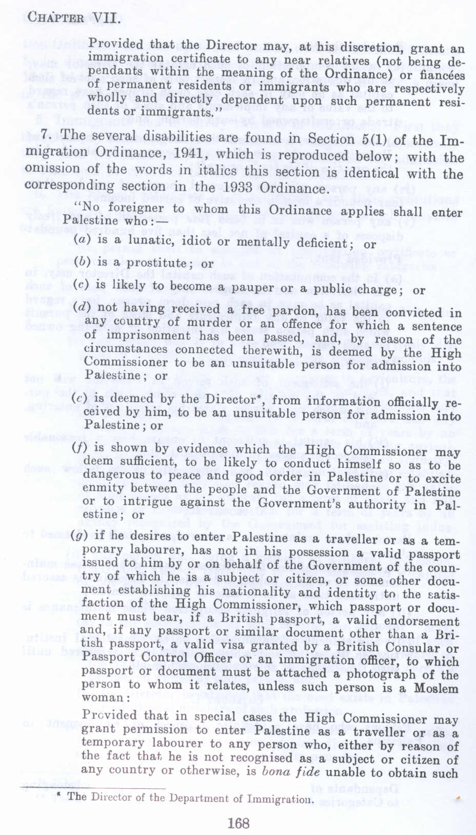 7. The several disabilities are found in Section 5(1) of the Immigration Ordinance, 1941, which is reproduced below; with the omission of the words in italics this section is identical with the corresponding section in the 1()33 Ordinance.