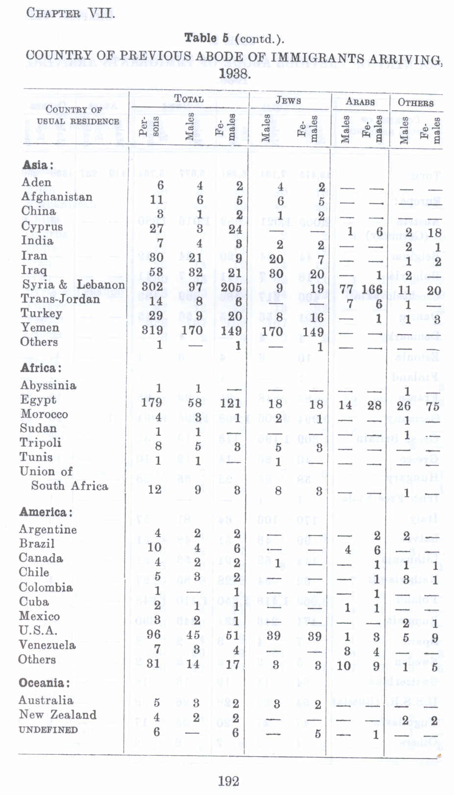 COUNTRY OF PREVIOUS ABODE OF IMMIGRANTS ARRIVING, 1938.