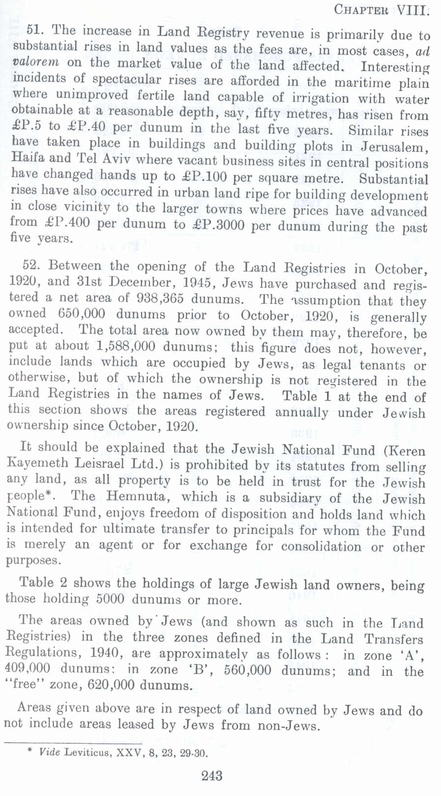 Areas given above are in respect of land owned by Jews and do not include areas leased by Jews from non-Jews.