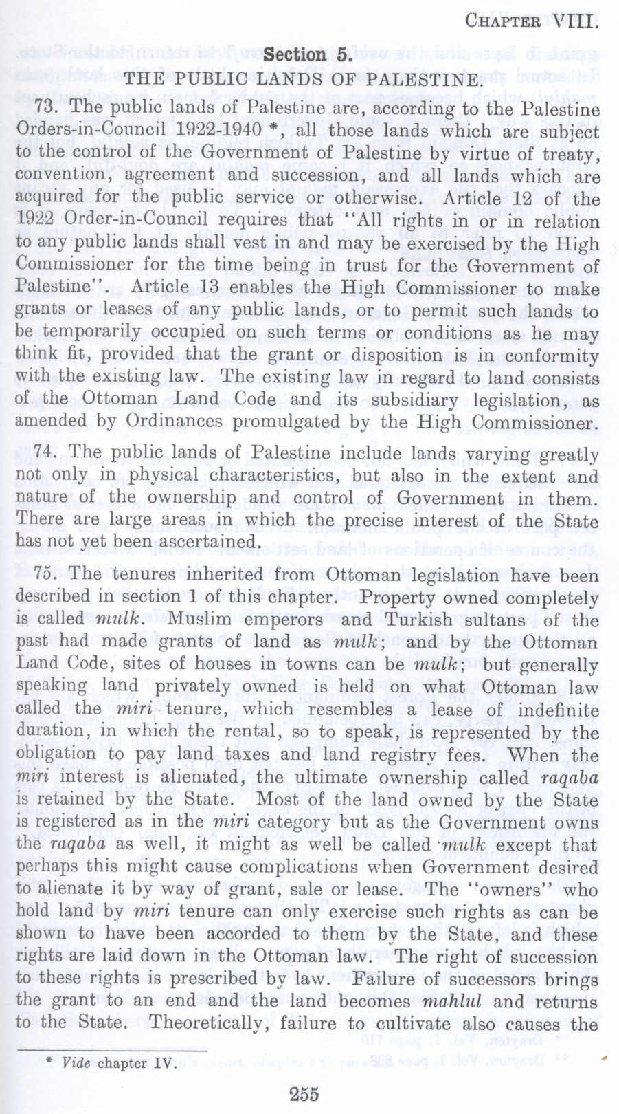 The Public Lands of Palestine before 1948 (Nakba), British Mandate: A Survey of Palestine: Volume I - Page 255. Chapter VIII: Land: Section 5 |