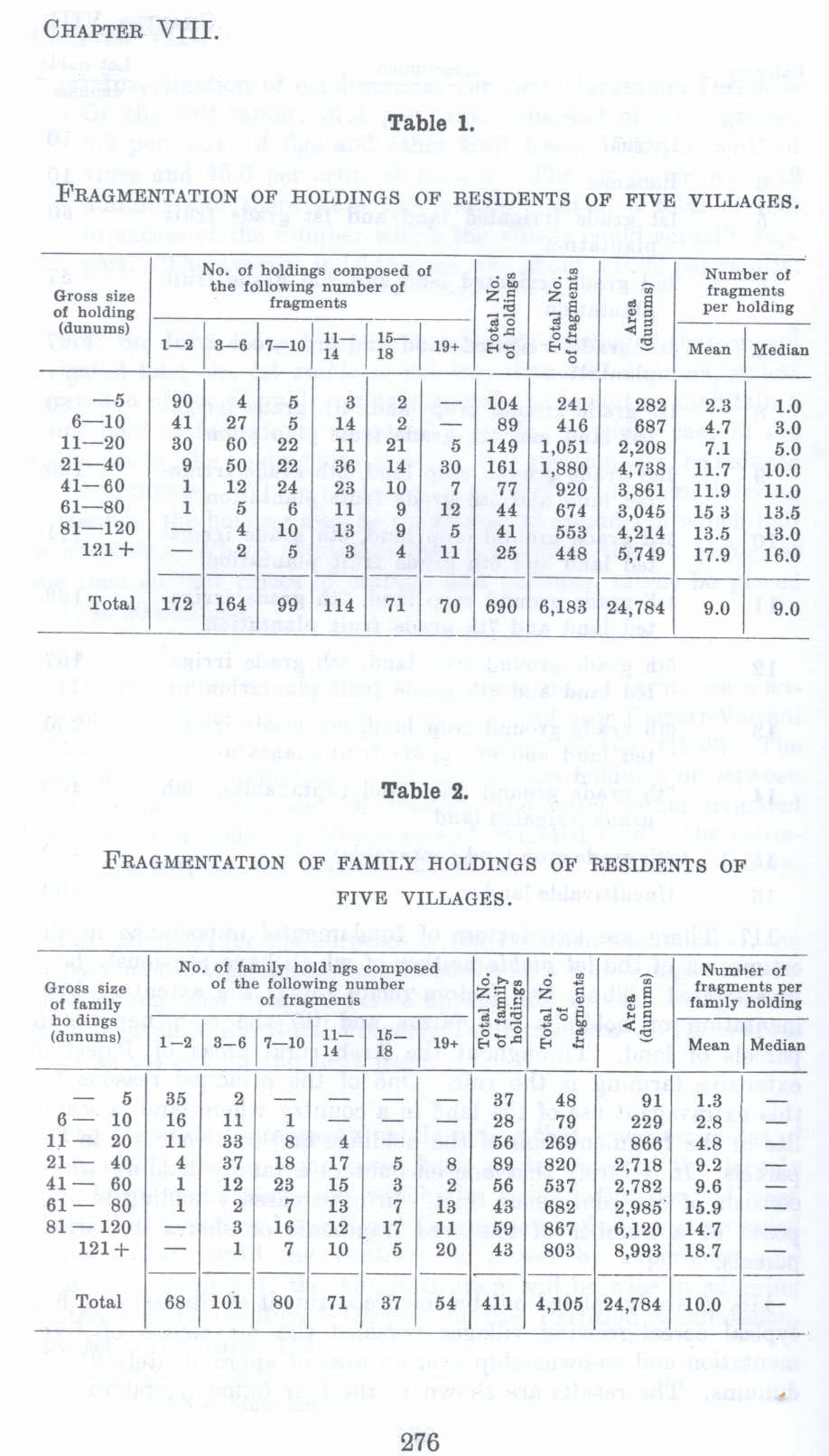 FRAGMENTATION OF HOLDINGS OF RESIDENTS OF FIVE VILLAGES.
