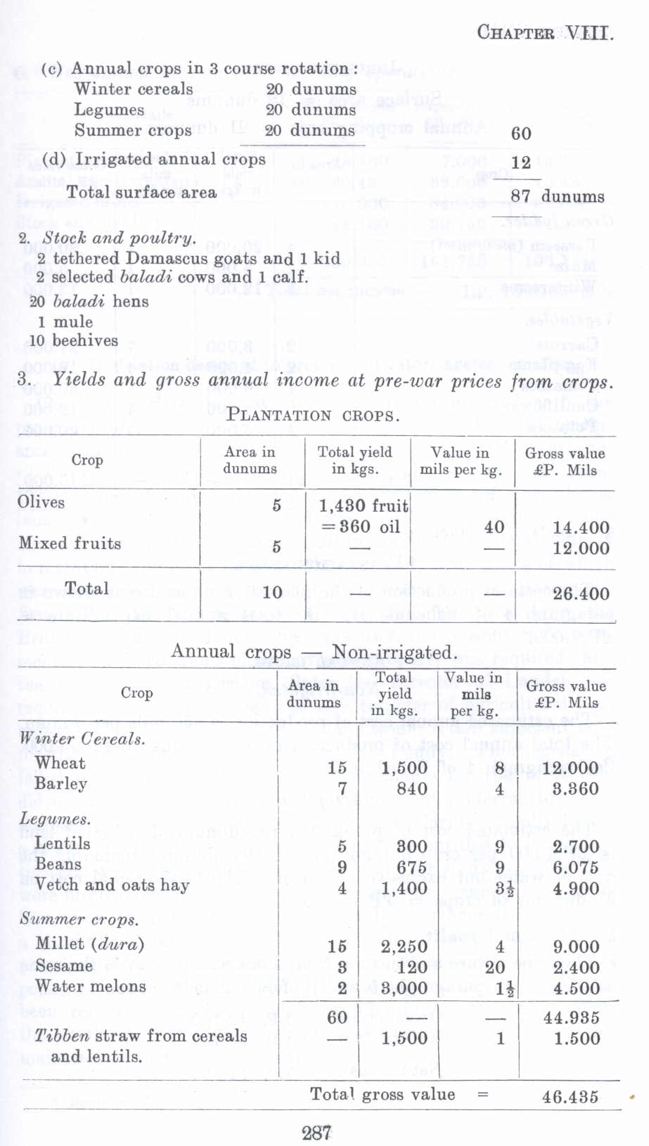 3. Yields and gross annual income a.t pre-war prices from crops.