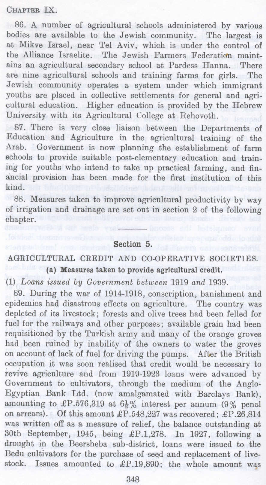 Agricultural Credit and Co-operative Societies in Palestine before 1948 (Nakba), (a) Measures Taken by the Government of Palestine to Provide Agricultural Credit. British Mandate: A Survey of Palestine: Volume I - Page 348. Chapter IX: Agriculture: Section 5 |