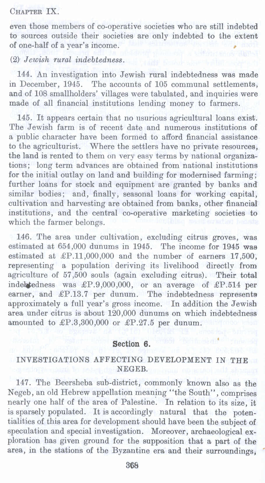 Jewish rural indebtedness in Palestine before 1948. plus Government Investigations Affecting Agriculture Development In the Negeb in Palestine before 1948 (Nakba), British Mandate: A Survey of Palestine: Volume I - Page 368. Chapter IX: Agriculture: Section 6 |