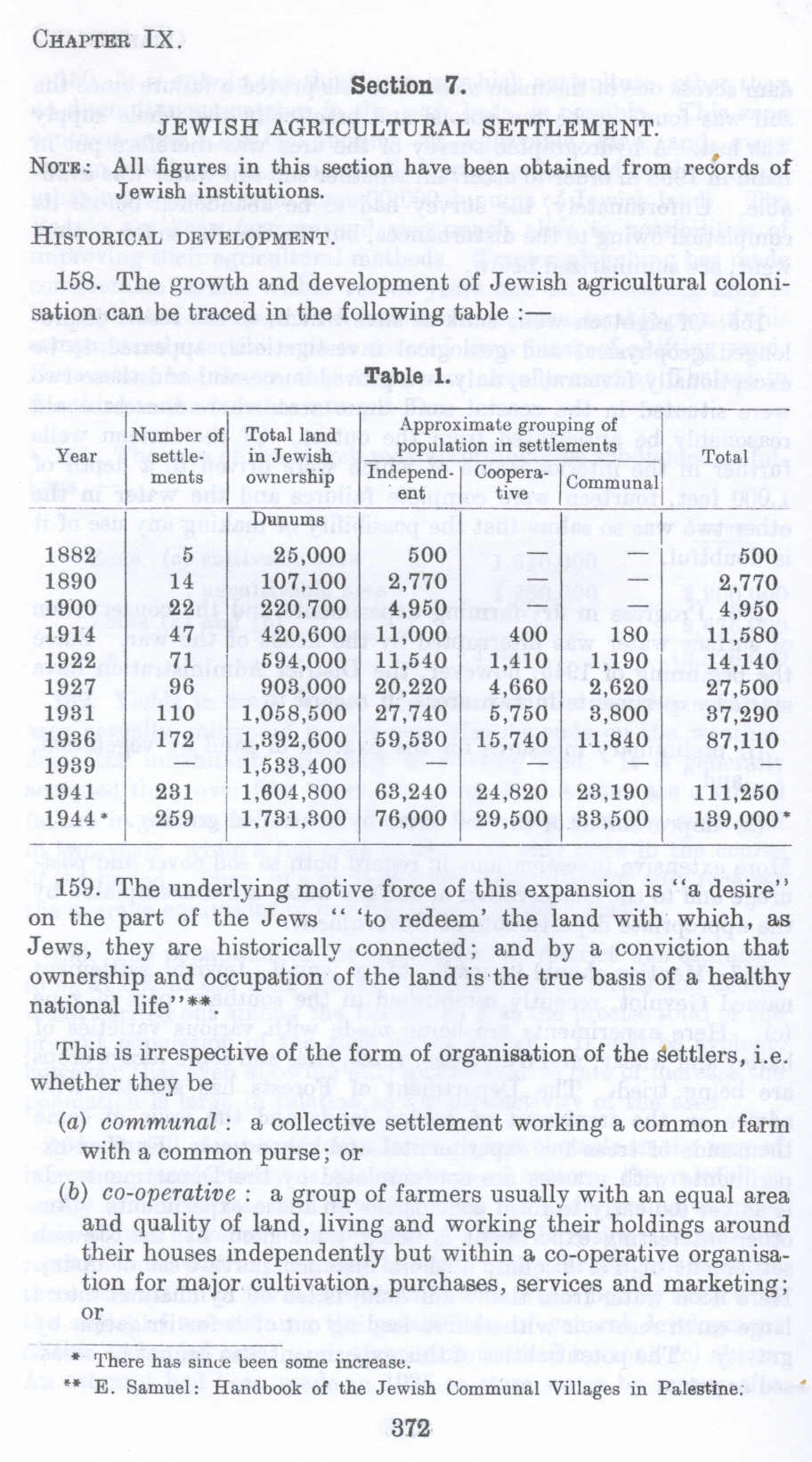 Jewish/Zionist Agricultural Settlements in Palestine before 1948 (Nakba), British Mandate: A Survey of Palestine: Volume I - Page 372. Chapter IX: Agriculture: Section 7 |