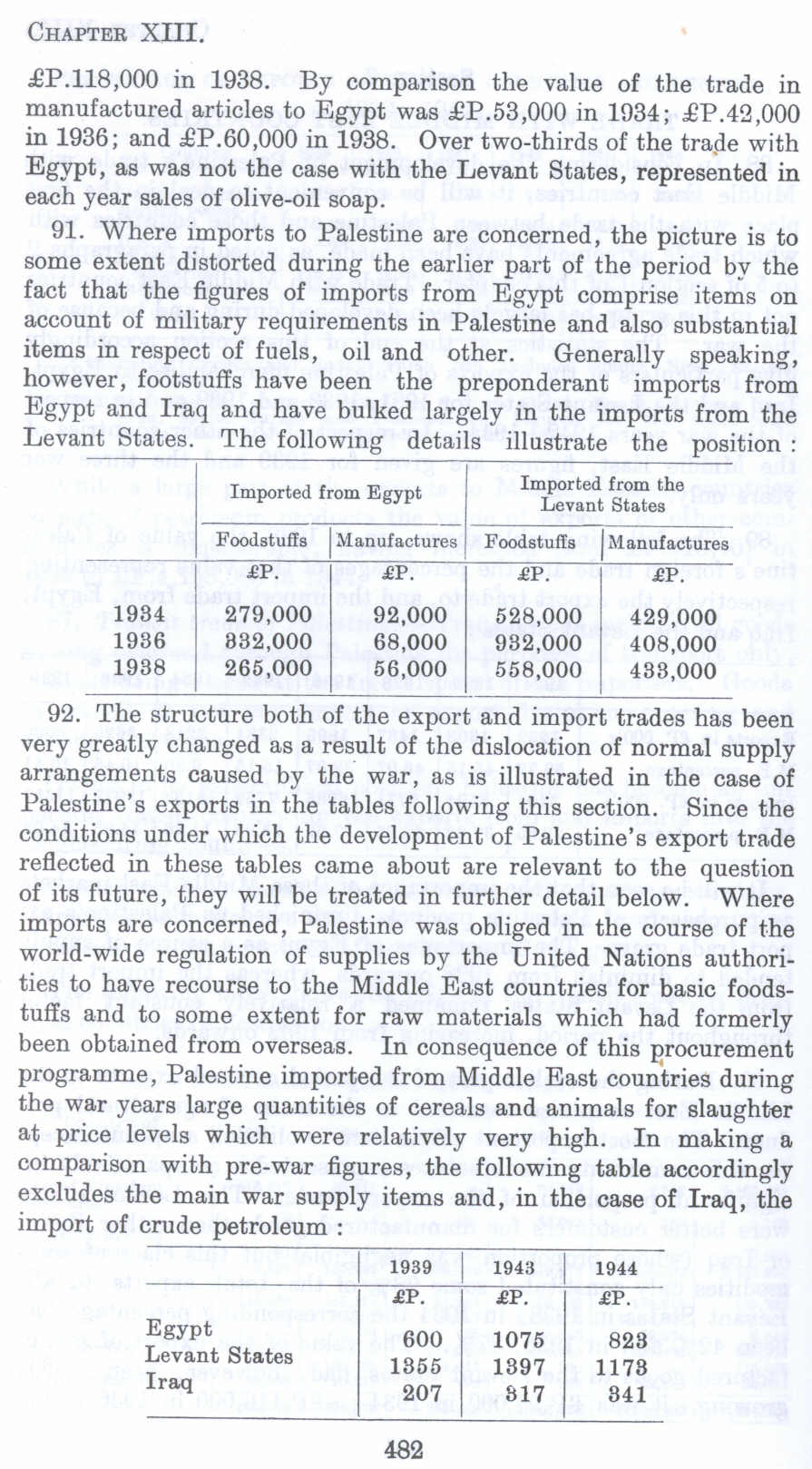 Palestine's Trade With Middle Eastern Countries: Imports to Palestine From Egypt and Other Levant States, 1934, 1936, 1938 before 1948 (Nakba), British Mandate: A Survey of Palestine: Volume I - Page 482. Chapter XIII: Section 3: |
