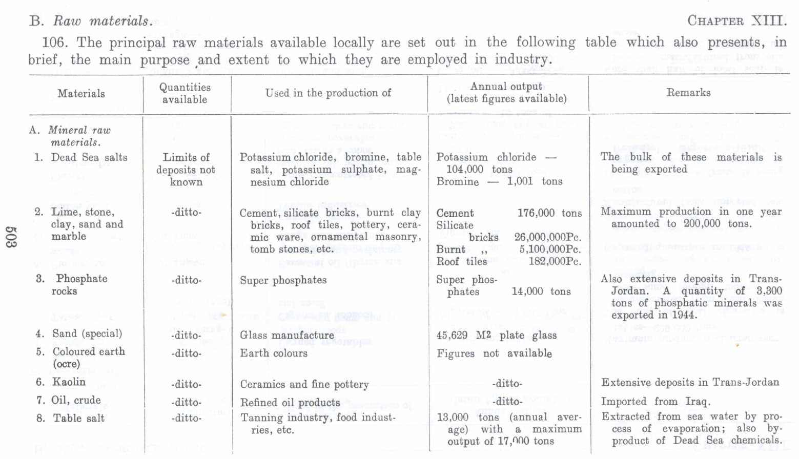 Survey of Palestinian Industry: Raw Materials before 1948 (Nakba), British Mandate: A Survey of Palestine: Volume I - Page 503. Chapter XIII: Section 4 |