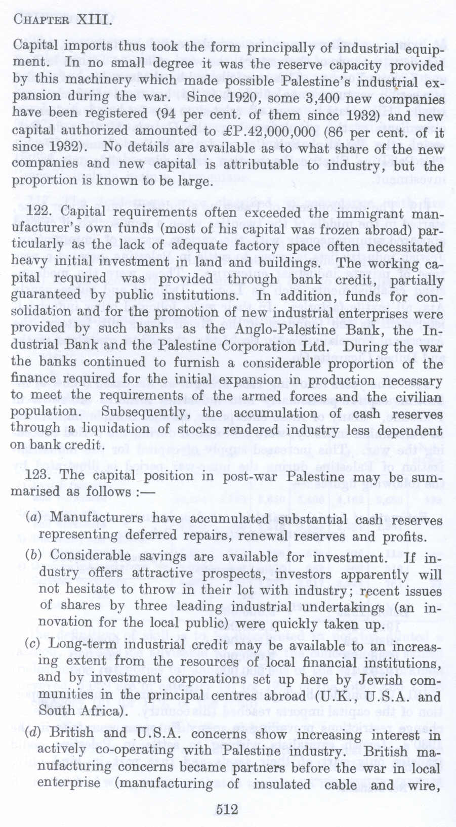 123. The capital position in post-war Palestine may be summarised as follows :-