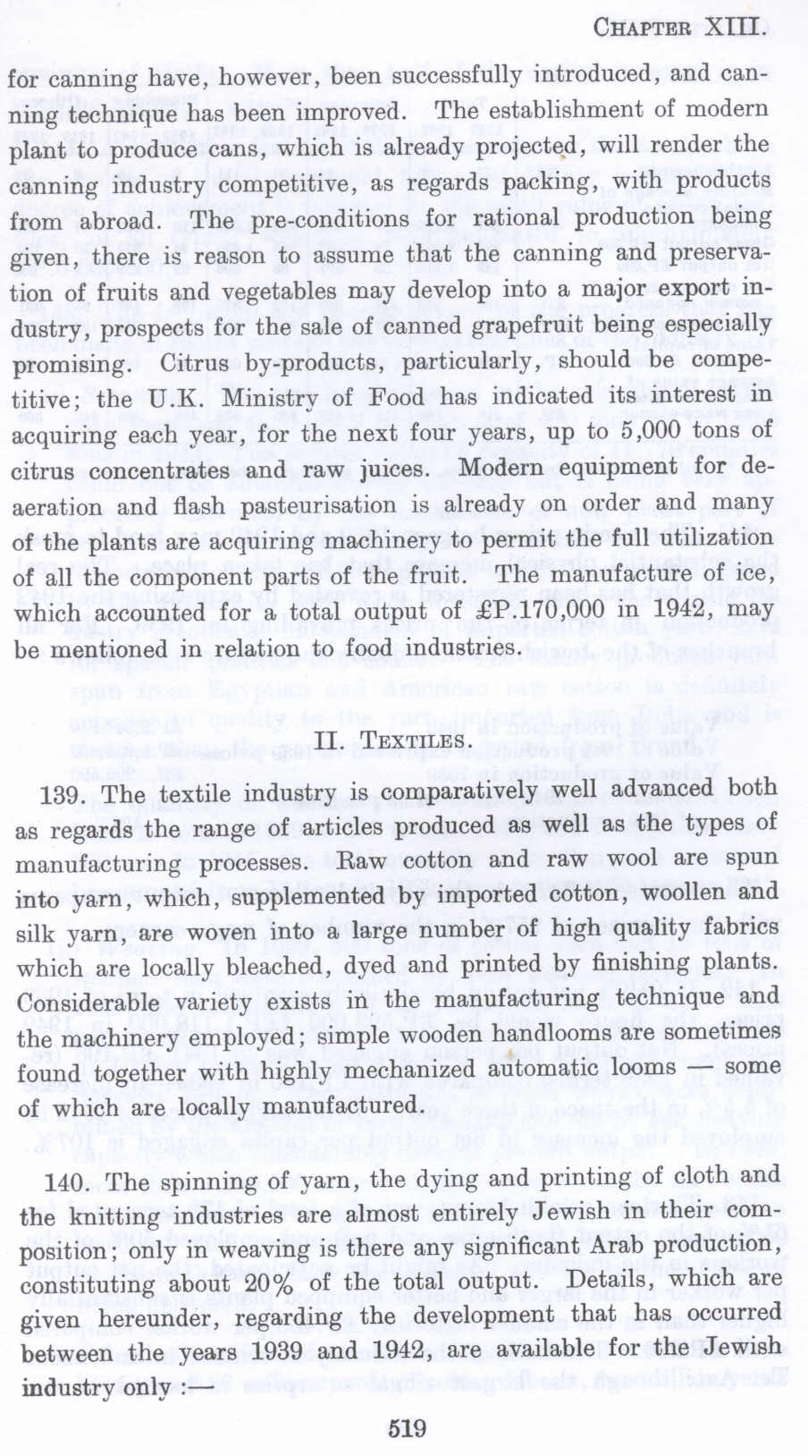 A Survey of Palestinian Industry: Textile in Palestine before 1948 (Nakba), British Mandate: A Survey of Palestine: Volume I - Page 519. Chapter XIII: Section 4 |