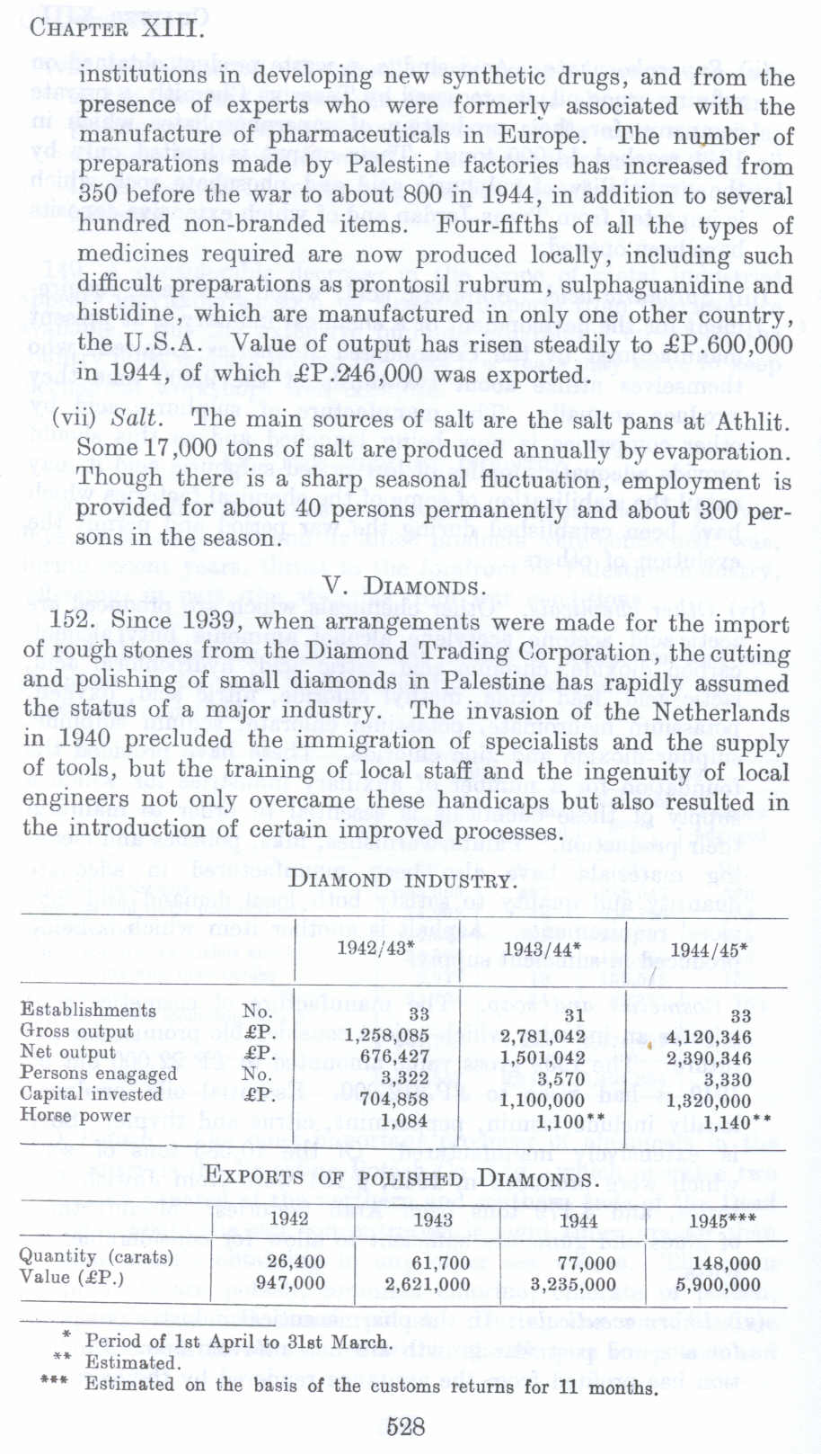 A Survey of Palestinian Industry: Diamonds in Palestine before 1948 (Nakba), British Mandate: A Survey of Palestine: Volume I - Page 528. Chapter XIII: Section 4 |