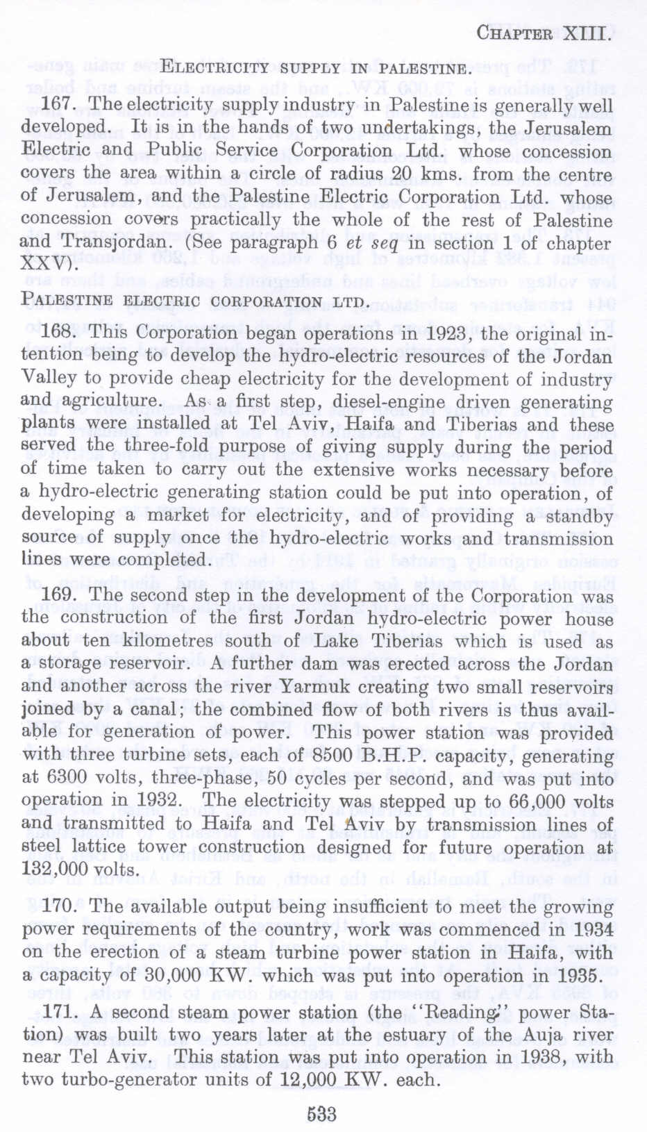 British Mandate: A Survey of Palestine: Volume I - Page 533. Chapter XIII: Section 4: A Survey of Industry: Electric Supply in Palestine |