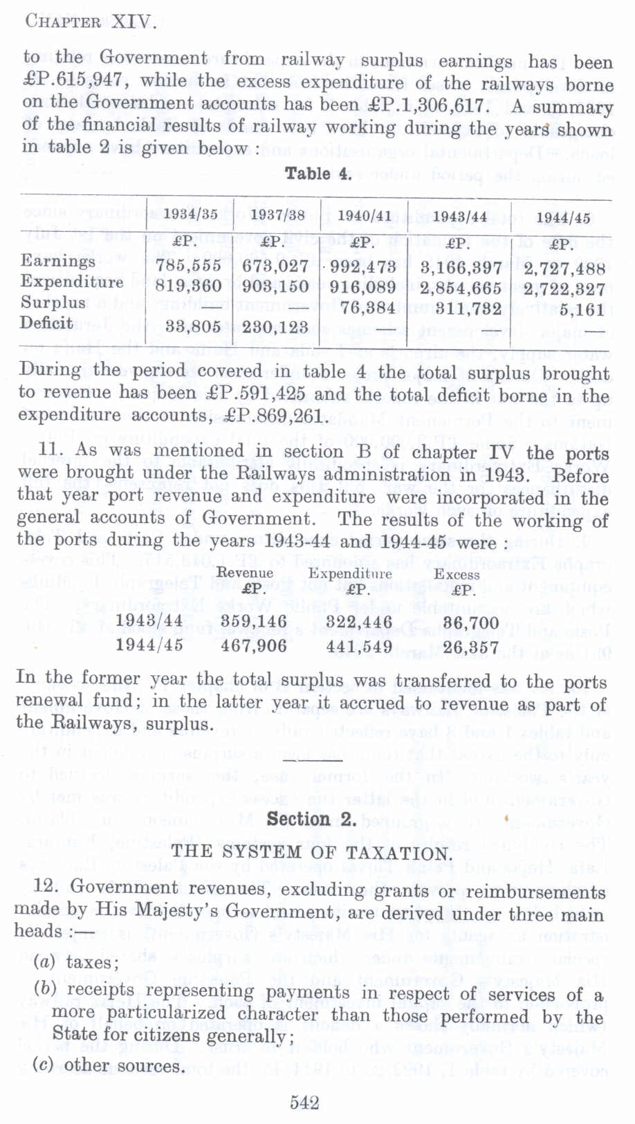 Earning, Expenditure, Surplus and Deficit, The System of Taxation in Palestine before 1948 (Nakba), British Mandate: A Survey of Palestine: Volume II - Page 542. Chapter XIV: Finance: Section 2: Table 4: |