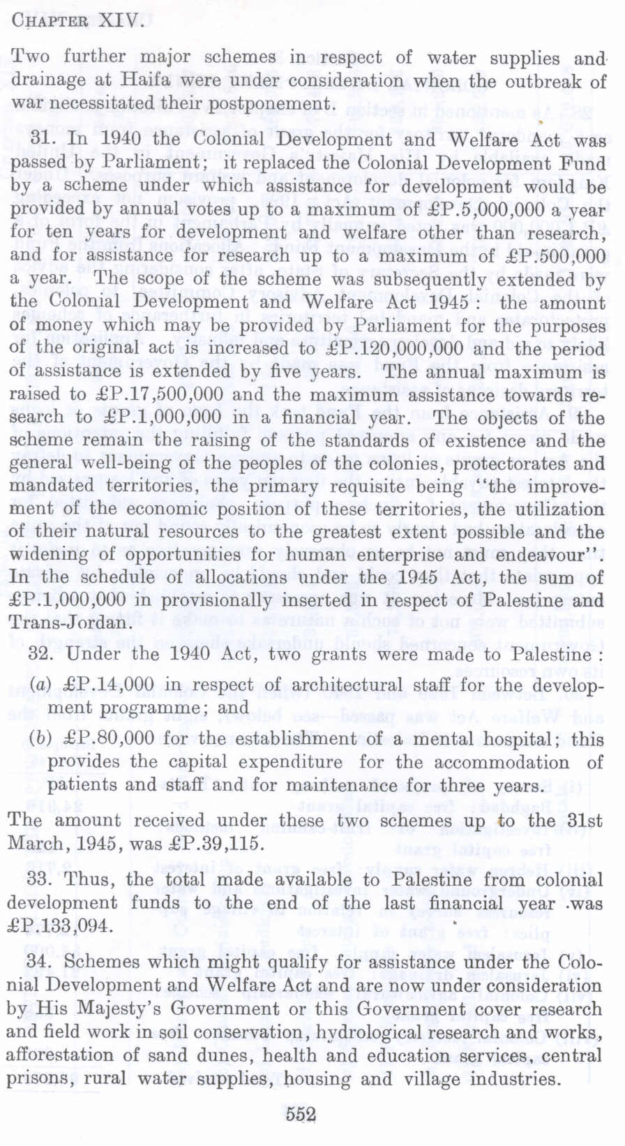 33. Thus, the total made available to Palestine from colonial development funds to the end of the last financial year .was £P.133,094.