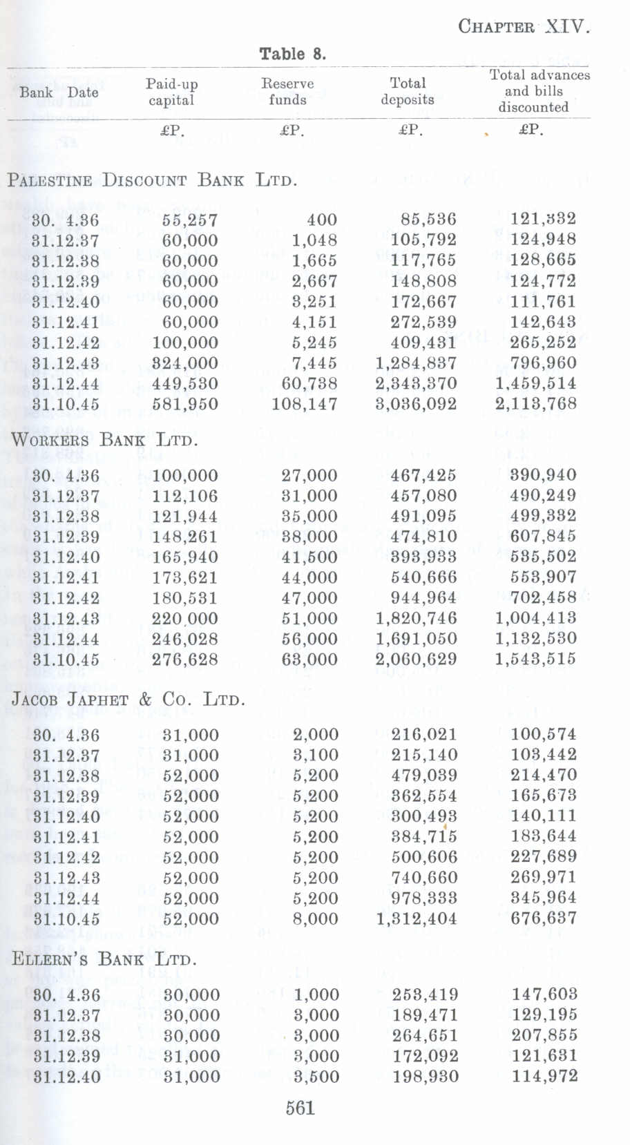 Balance Sheet for Five Zionist/Jewish Banks, 1939 to 1945 in Palestine before 1948 (Nakba), British Mandate: A Survey of Palestine: Volume II - Page 561. Chapter XIV: Finance: (e) Control of Banks : Table 8 |